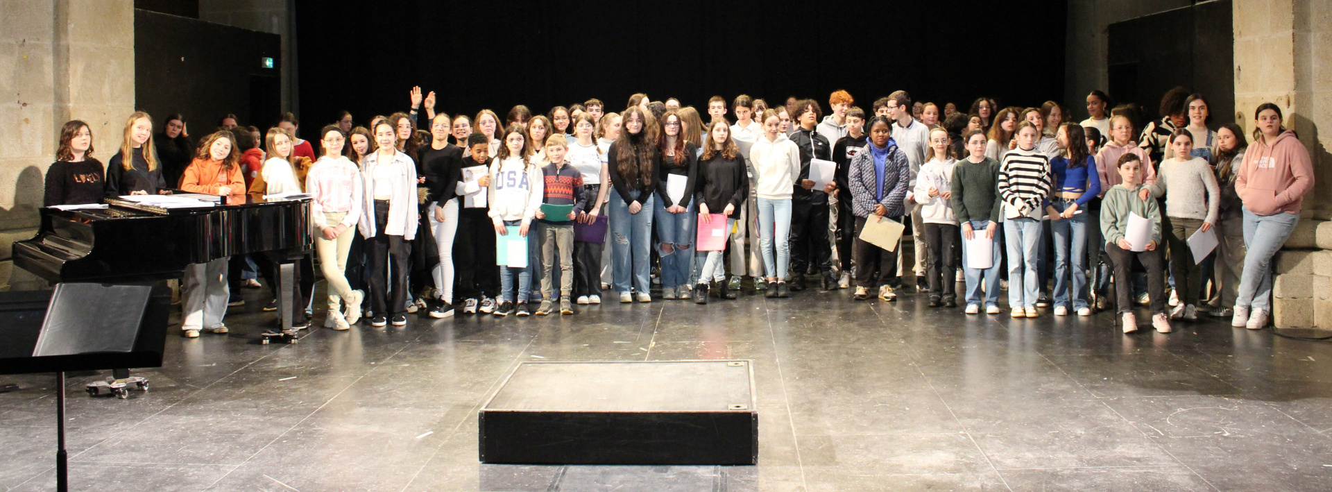 Ce lundi 8 avril 2024, les chorales de trois collèges (collèges Max Jacob, collège Laennec et collège La Tour d’Auvergne) se sont regroupées à l’auditorium du conservatoire de Quimper (CMAD).